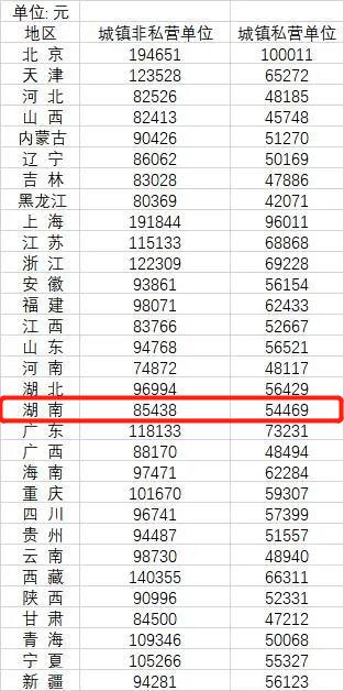 湖南省非私营单位、私营单位平均工资数据